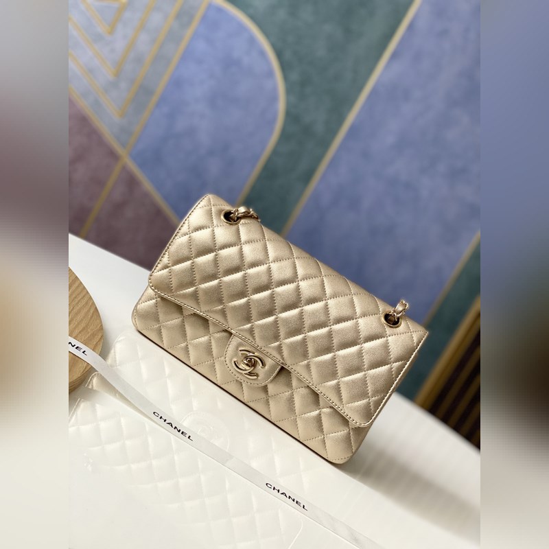 Chanel Champagne Gold CF Classic Replica Bag säteilevä ja tyylikäs