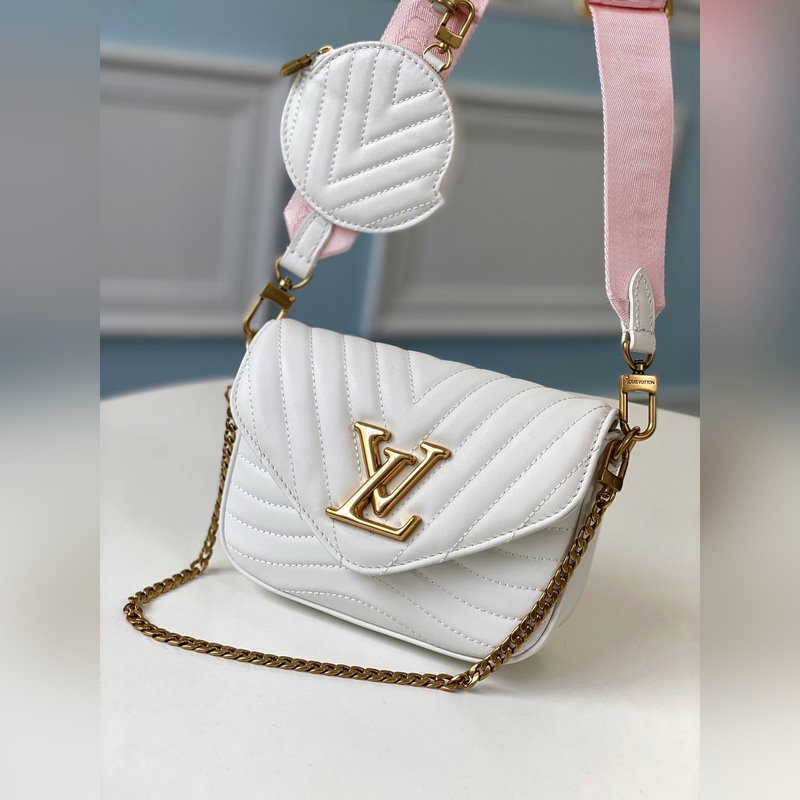 LV New Wave M56466 lumivalkoinen tikattu vasikanahkainen monitoimilaukku