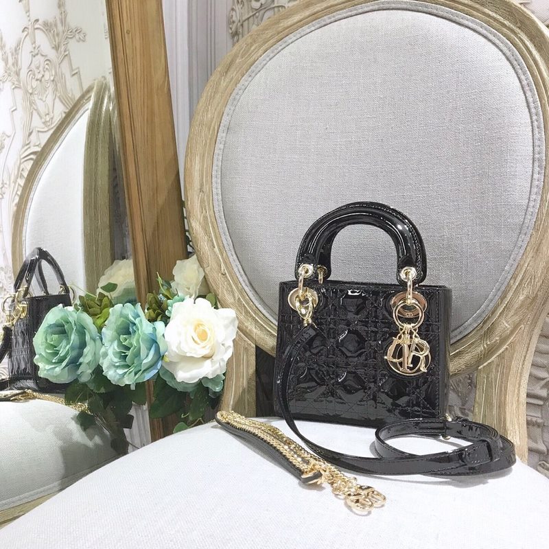 Aito Dior M673 musta kiiltonahkainen replikalaukku kultaisella laitteistolla