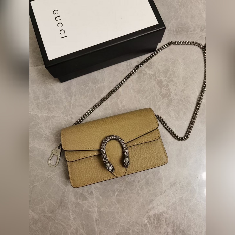 Gucci 699757 Super Mini Replica Bag, jossa on keraaminen GG-yksityiskohta ja ketjuhihna