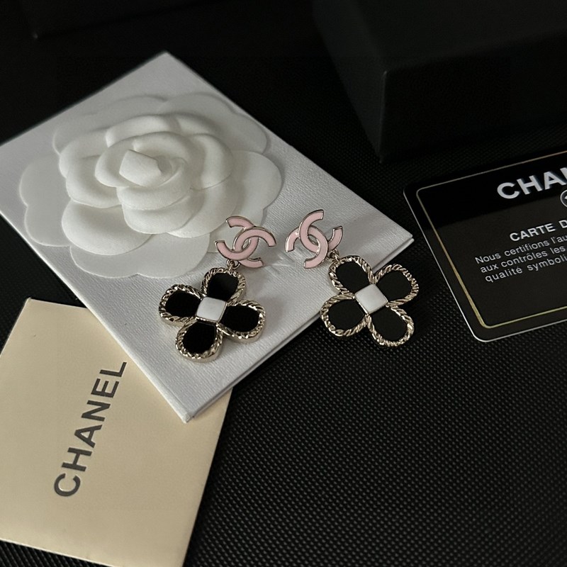 Chanel Black and White Pearl CC -nappikorvakorut Z messinkimateriaalia
