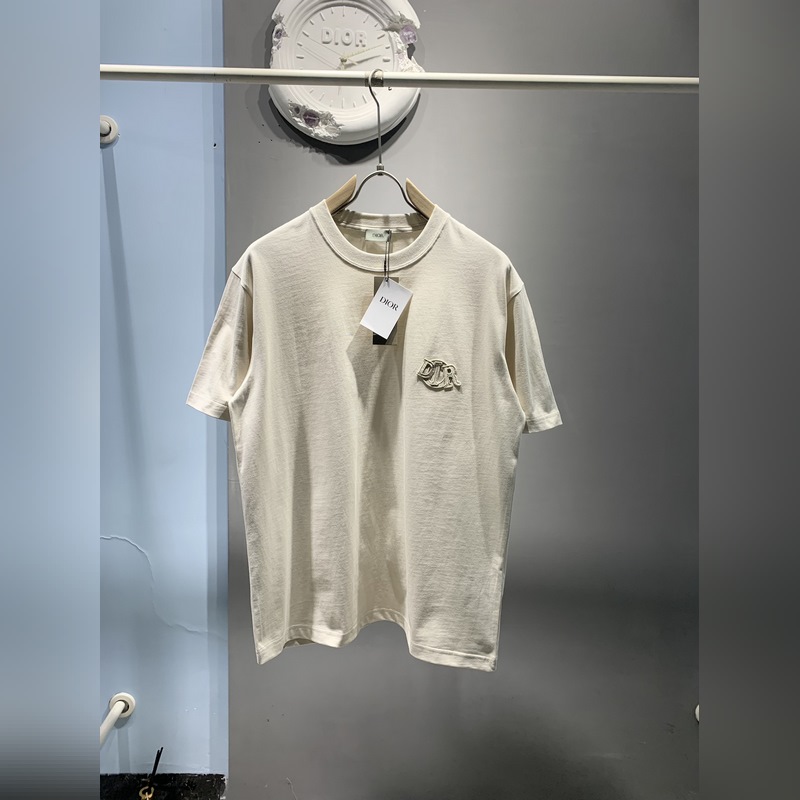 Dior Charm puuvillainen T-paita, jossa on pesty viimeistely