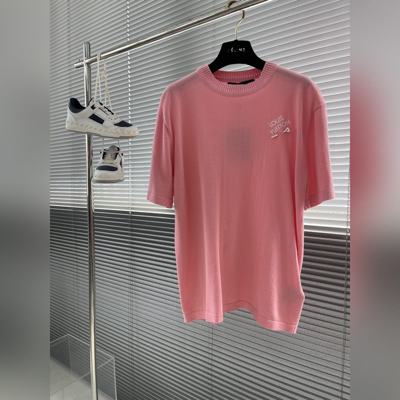 LV 24ss kevät/kesä uuden värinen t-paita hieno puuvillaneule pehmeällä uurretulla pääntiellä