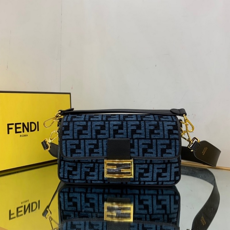 FENDI Baguette Medium Replica -laukku, jossa läppä ja FF-magneettinen suljin