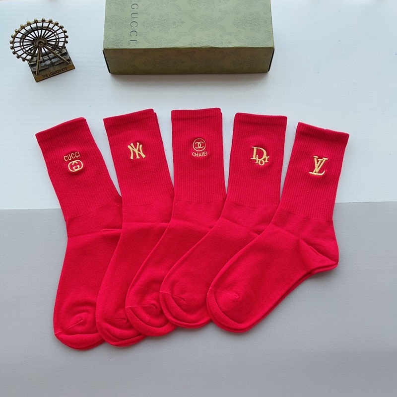 Gucci High Version brodeeratut punaiset sukat 5 paria trendikkäitä pitkät sukat