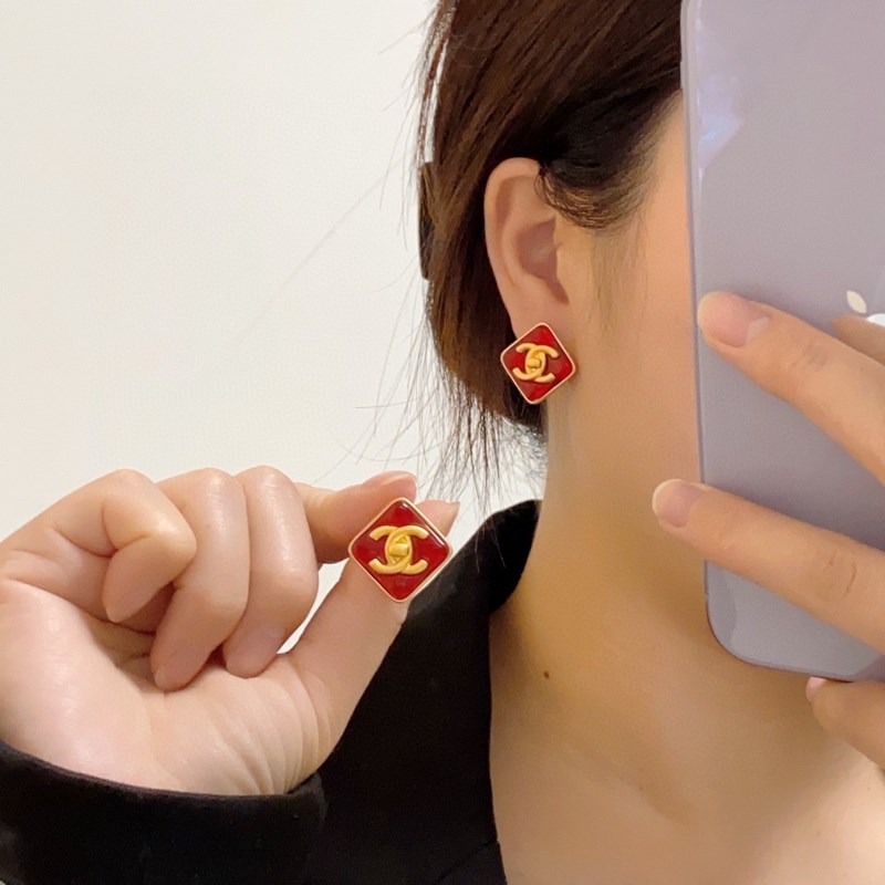 Chanel New Square Red Double C Stud Korvakorut Tyylikäs muotoilu