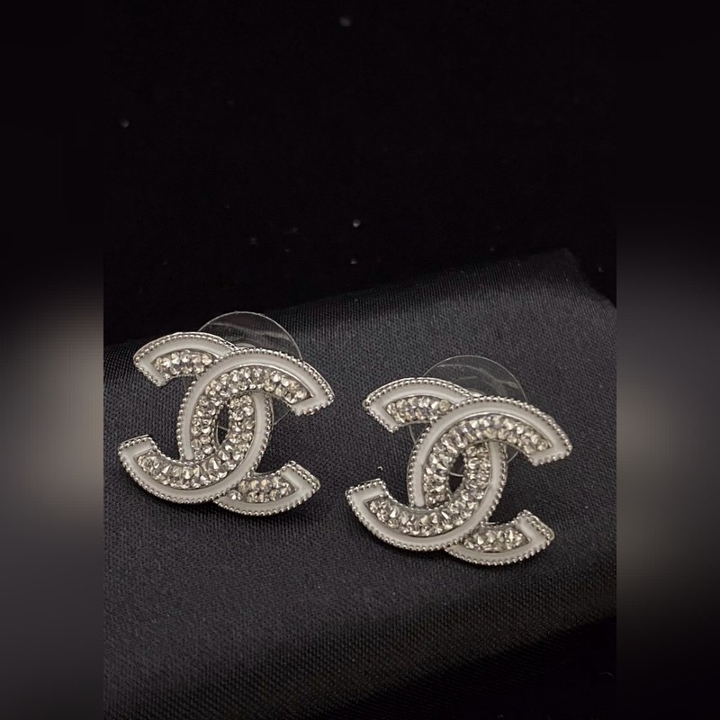 Chanel CHAN 25 White Edge -paljetoidut CC-korvakorut eri kokoisina