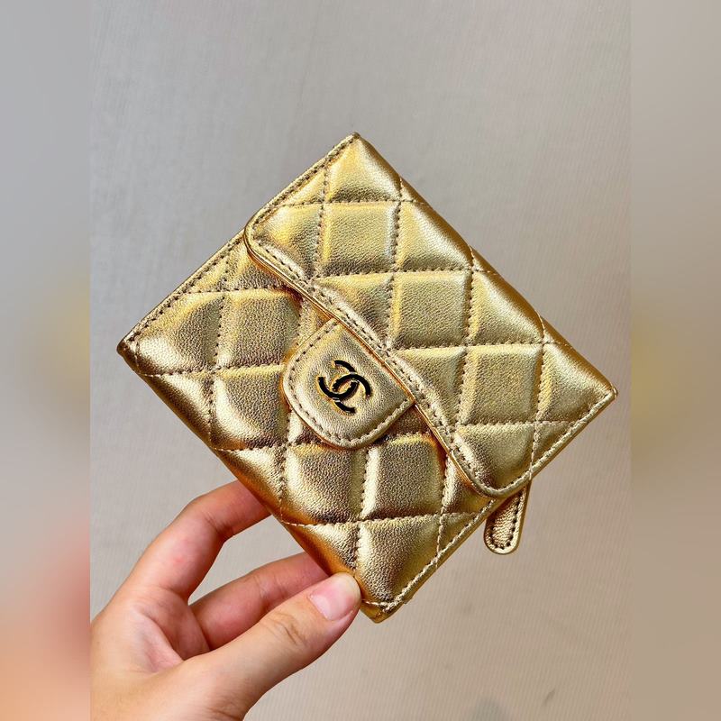 CHANEL 82288 kultainen lampaannahkainen CF-lompakko/korttikotelo, monipuolinen laatu