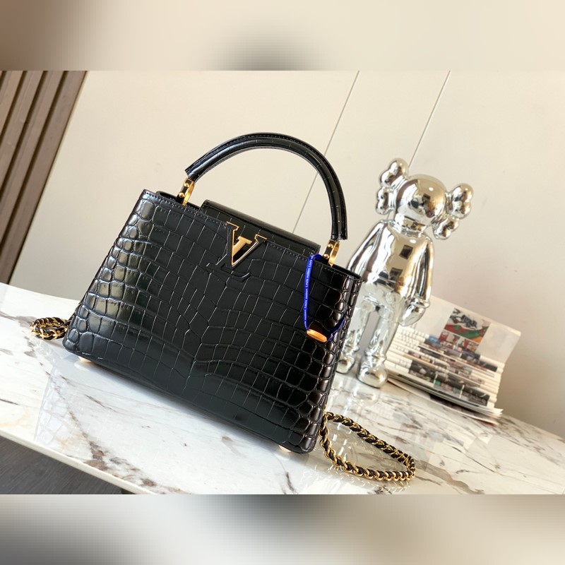 Tyylikäs alkuperäinen N81215 musta kiiltävä krokotiili capucin kultaisella soljella