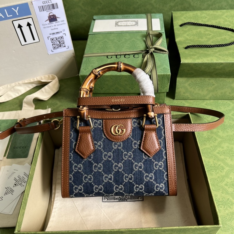 Mini Tote Replica Bag bambukahvoilla ja tupla G-lisävarusteilla alkuperäinen vihreä laatikkopakkaus