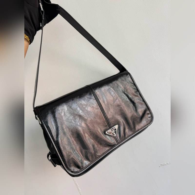 2VD073 Oil Wax Leather Crossbody Replica Bag, pehmeä ja kiiltävä