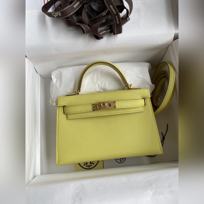 Käsin ommeltu Hermes Mini Kelly 19 cm Epsom Nahka Sitruunakeltainen Kulta Hardware