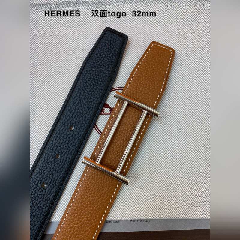 Hermes 32MM Kaksipuolinen vasikannahkavyö teräsraudalla