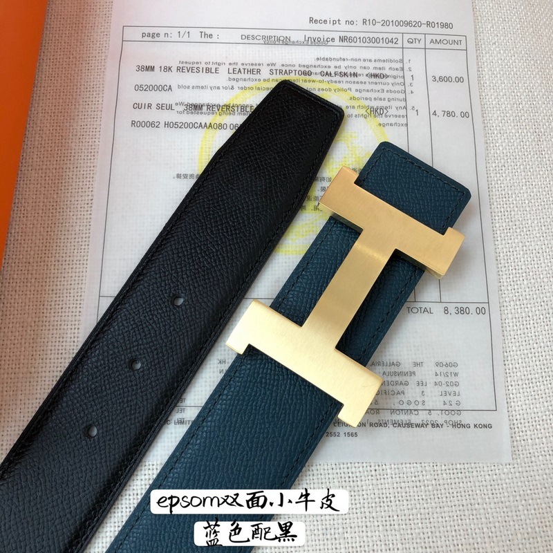 Hermèsin uusi kaksipuolinen pintanahkavyö 3,8 cm käsintehty jadeterässoljella