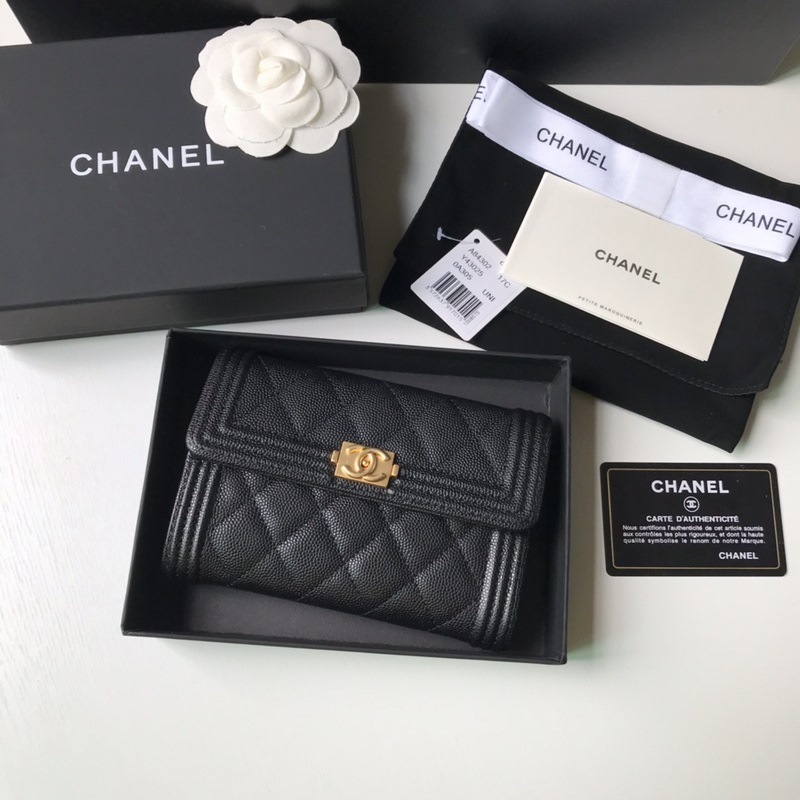 CHANEL Le Boy keskikokoinen lompakko A84302 musta nahkainen kultainen aksentti