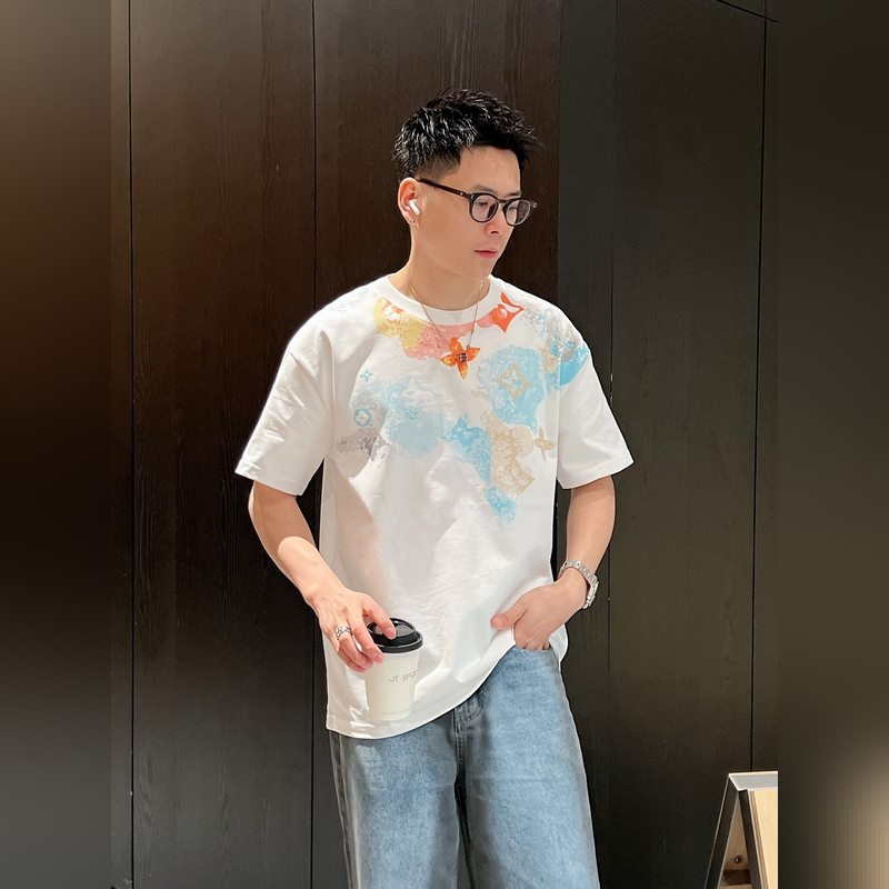 LV 24ss Summer Käsinmaalattu lyhythihainen T-paita Unique Art Series
