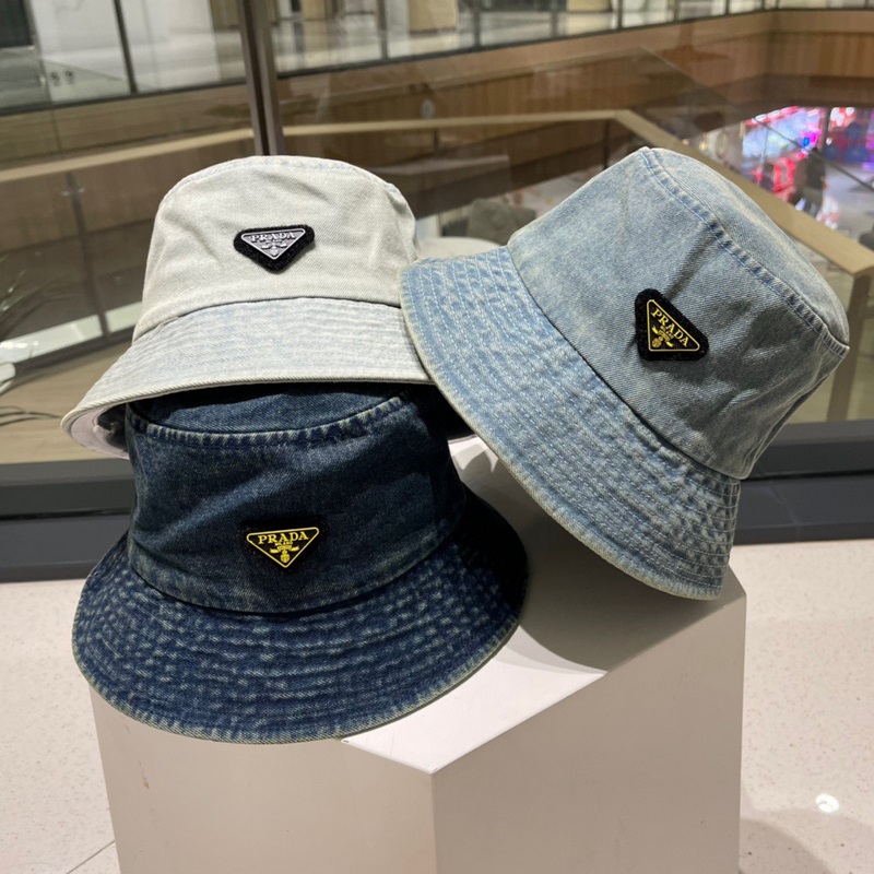 PRADA Naisten Kevätkesä Pestävä Denim Fisherman Hat Vintage&UV-suoja