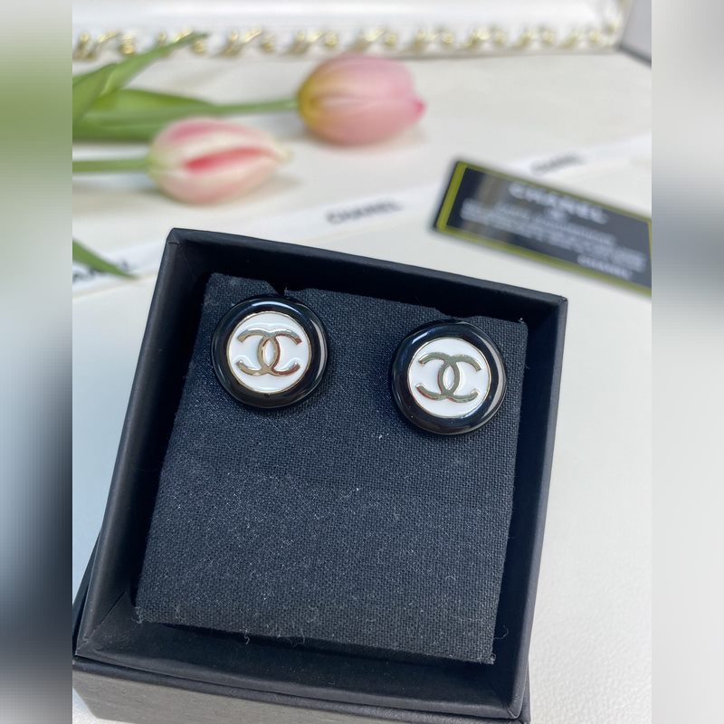 Chanel mustavalkoinen hartsi pyöreä nappi korvakorut