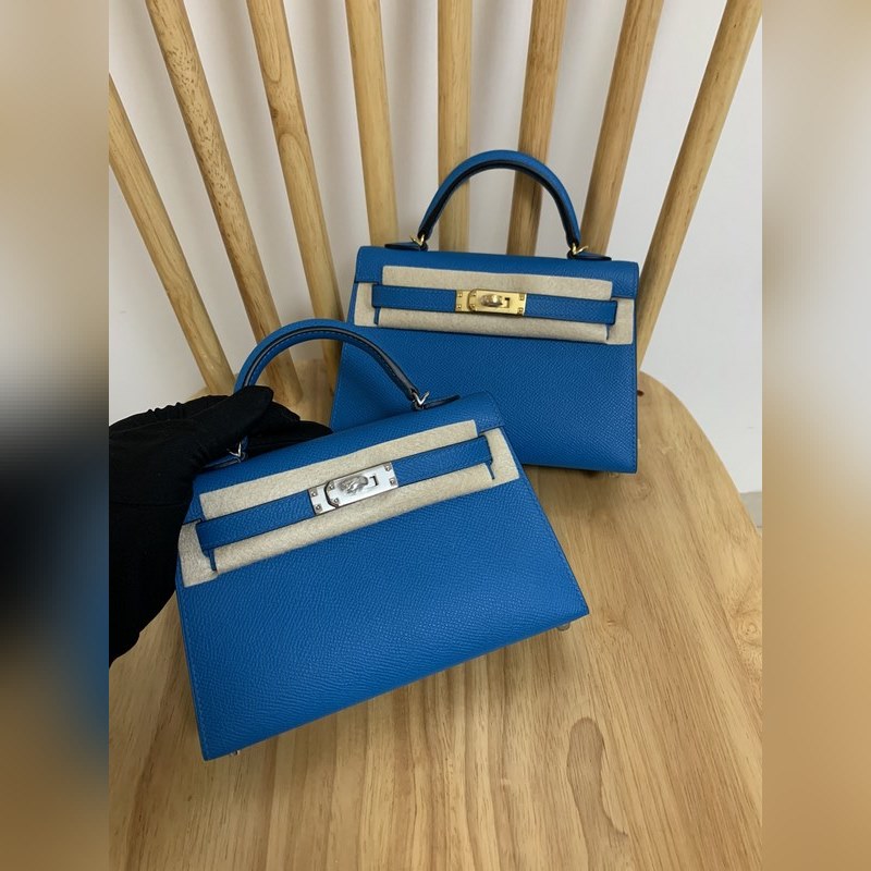 Hermès Epsom Kelly II Mini Replica Bag Tansania Blue Gold&Silver Hardware käsin ommeltu