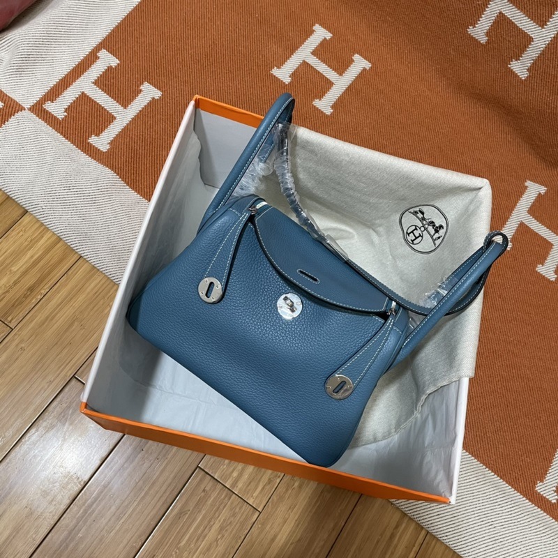 Hermès Lindy Käsilaukku TC Nahka Denim Sininen Kulta&Hopea Hardware