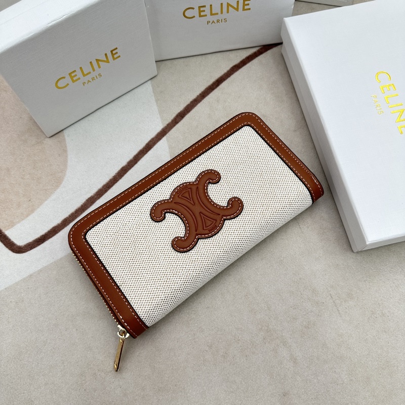 TRIOMPHE CUIR Vetoketjullinen lompakko ruskea kangas ja vasikannahka korkealaatuista käsityötä