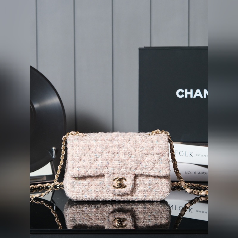 Chanel 21K Mini CF Handle Replica Bag AS24 vaaleaa kultaa