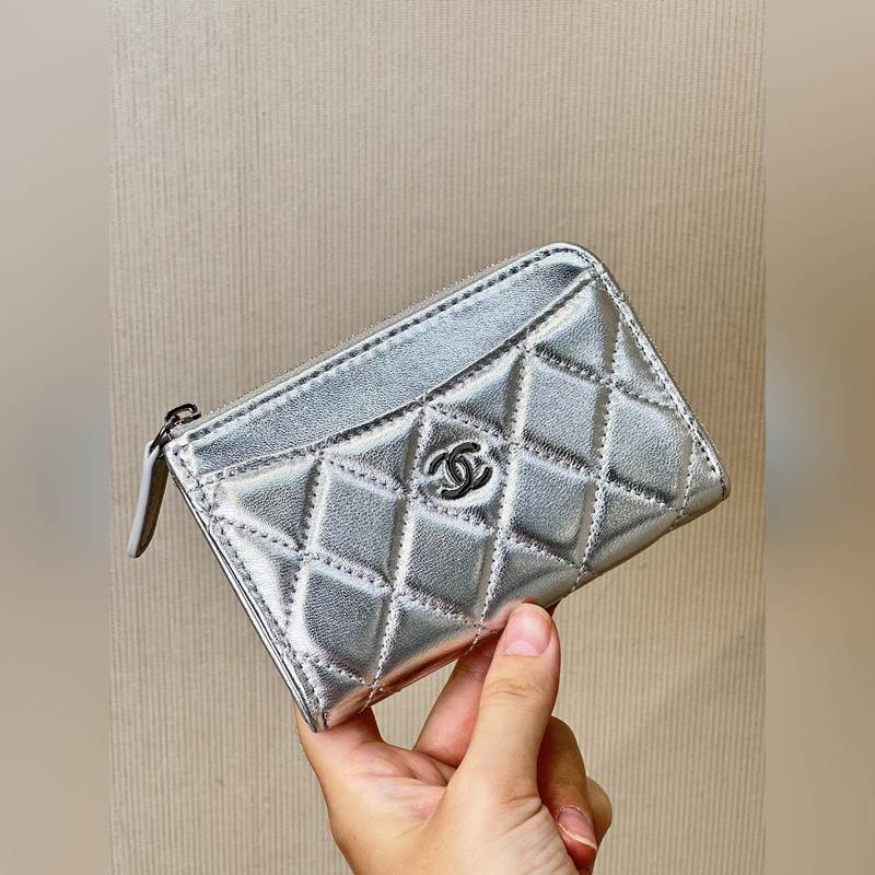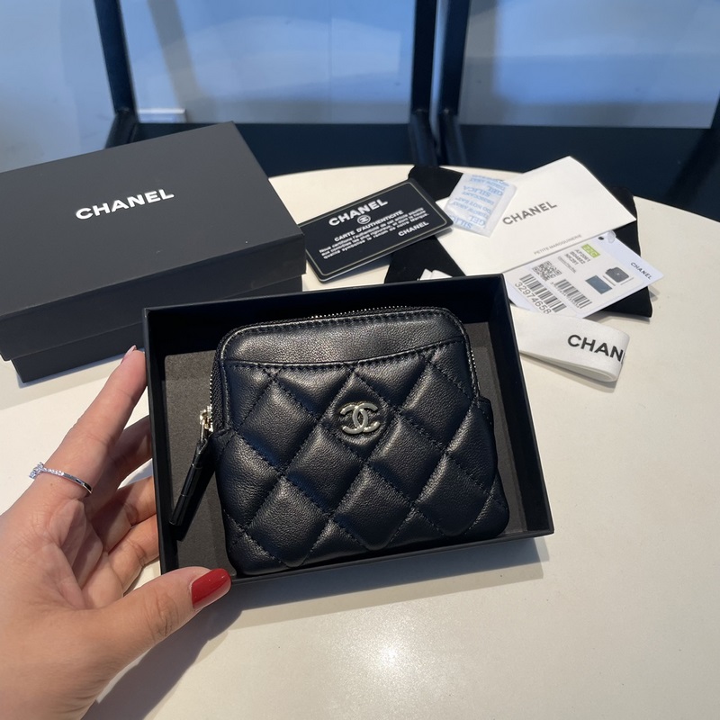 CHANEL 7-muotoinen yksivetoketjuinen korttikotelo 0221 Alkuperäinen laatu 12 cm
