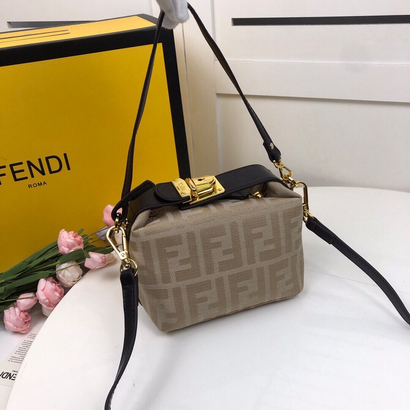 Fendi Roll Mini Shopping Replica Bag Monogram Kangas Beige FF Pattern Nahka Remmi