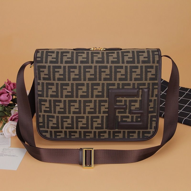 FENDI 6512 Pieni ruskea kangas, nahkainen miesten laukku