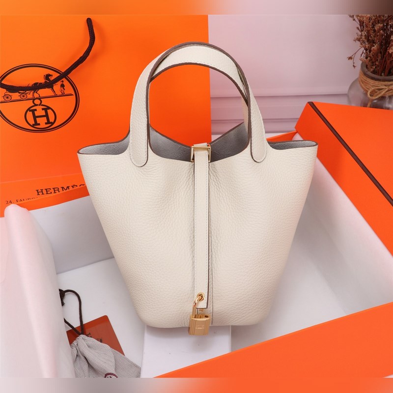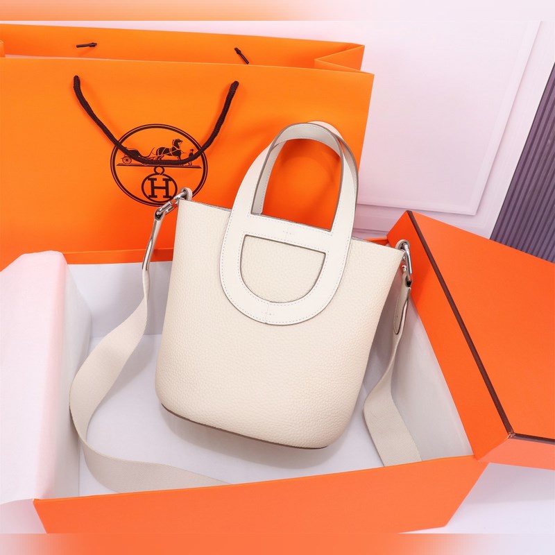 Hermès Unique 22cm Milkshake White TC-nahkainen käsintehty vahalinjakassi