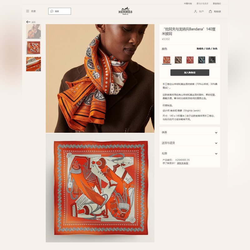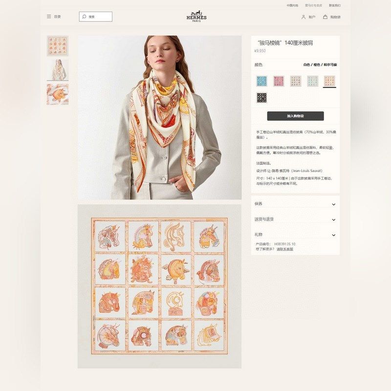 Premium H Velvet Square -huivi, jota suositellaan arvostetuille asiakkaille