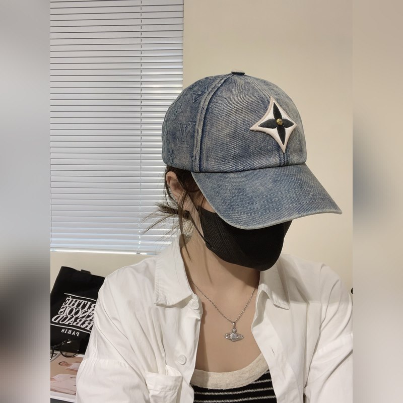 LV Louis Vuitton Denim brodeerattu baseballlippis, päivitetty katutyyli