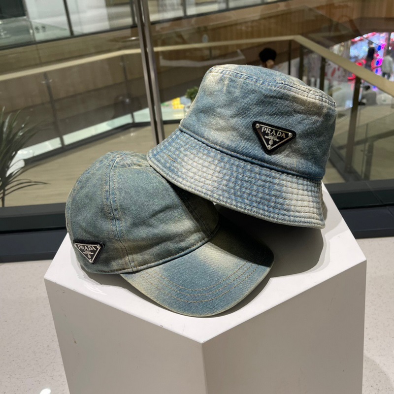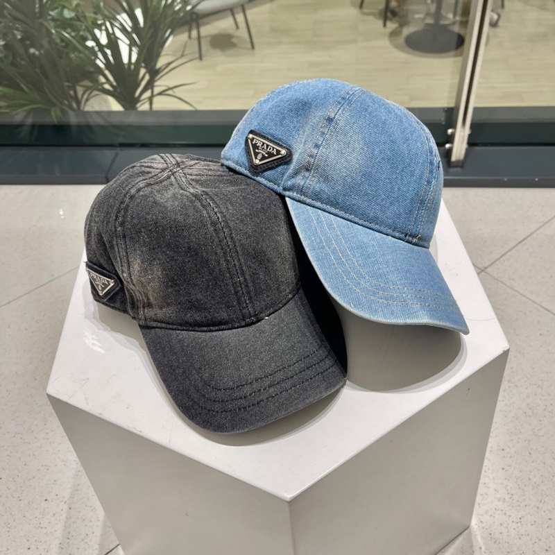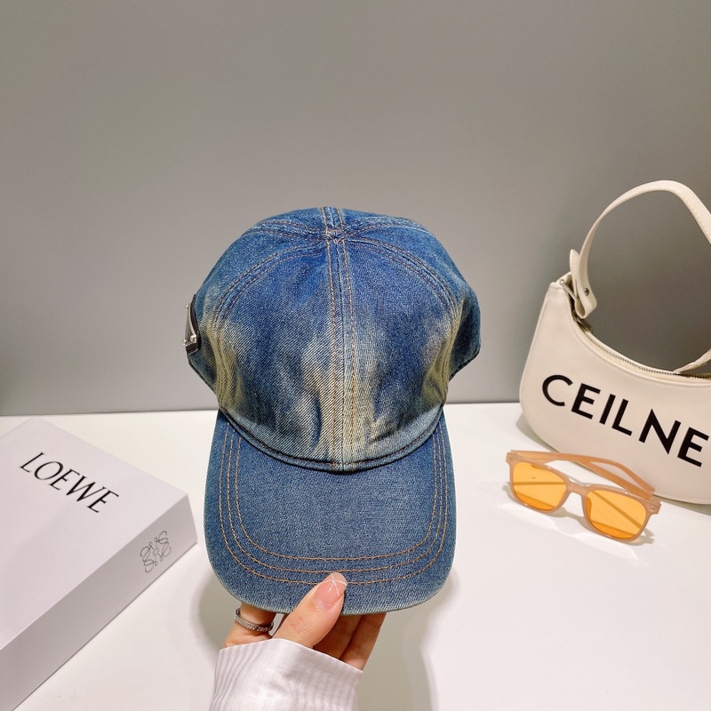 Prada Denim Triangle Baseball Cap Star Wash pehmeä kangas