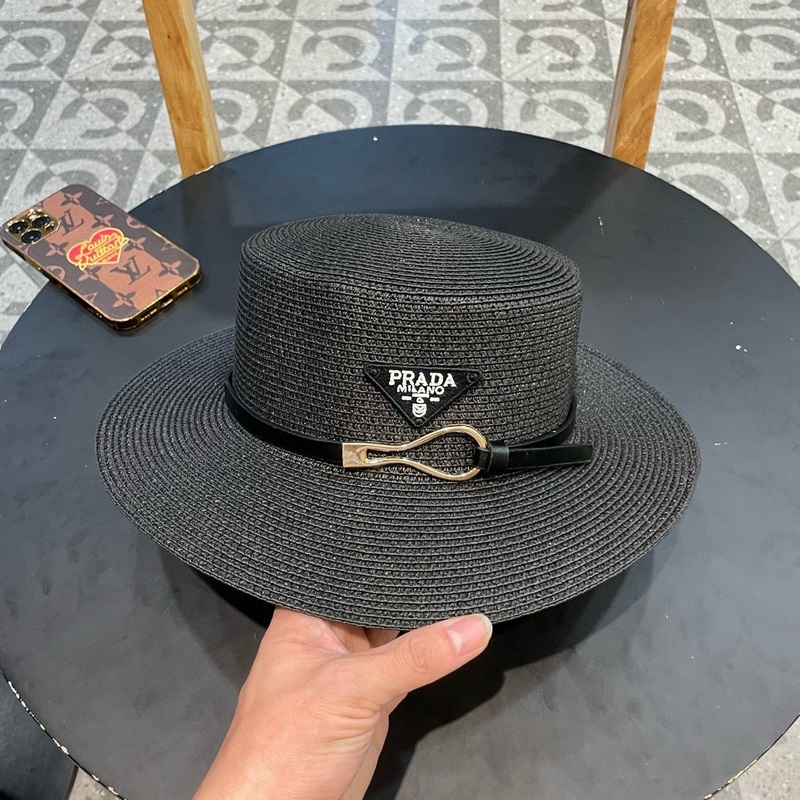 PRADA 2023 Straw aurinkohattu vyöllä Yksinkertainen ja monipuolinen