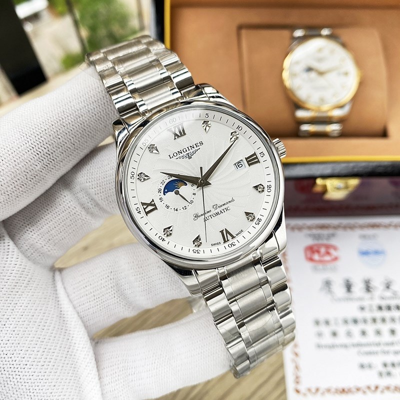 Longines Classic Moonphase miesten replica kellot Tyylikäs Big Three Hands Design