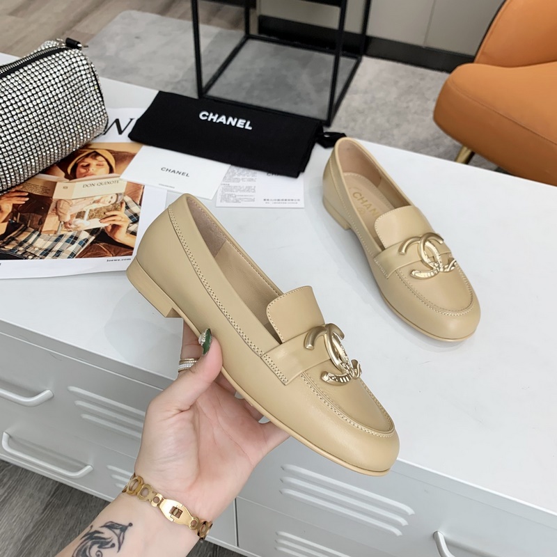 Chanel 2023 SS puoliveistetty suuri logo nahkakengät lampaannahkainen vuori