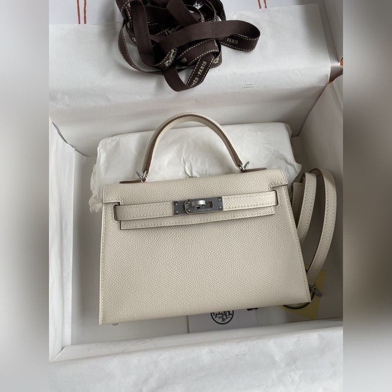 Käsin ommeltu Hermes Mini Kelly 19 cm Epsom-nahkaa maidonvalkoisena ja kullanruskeana
