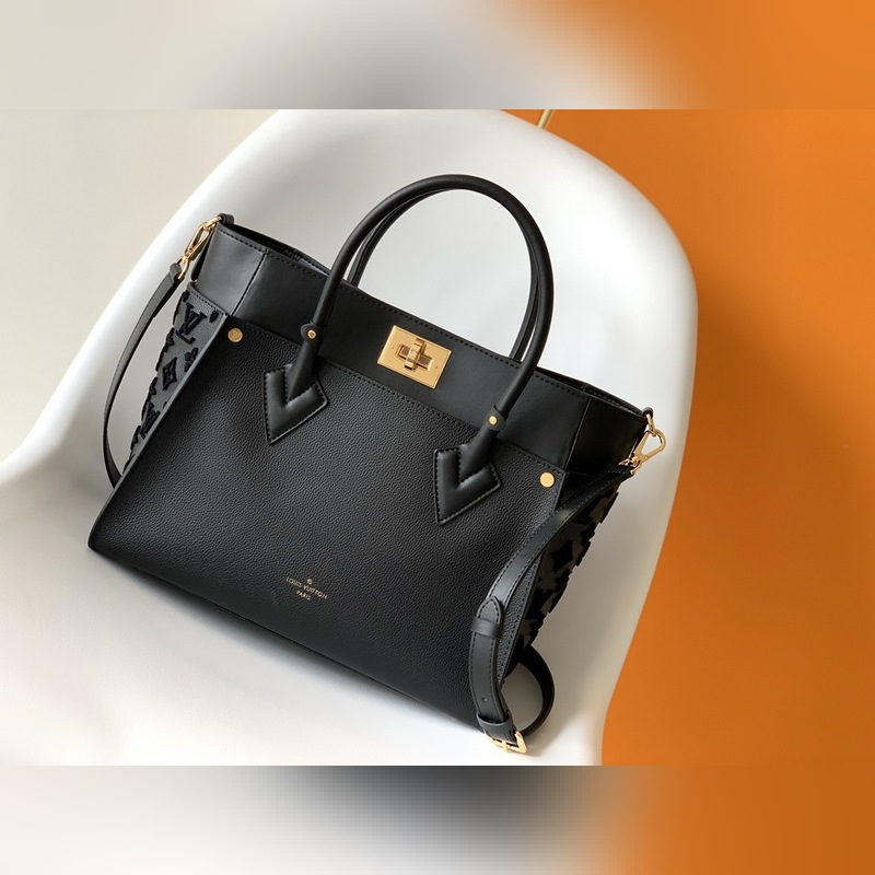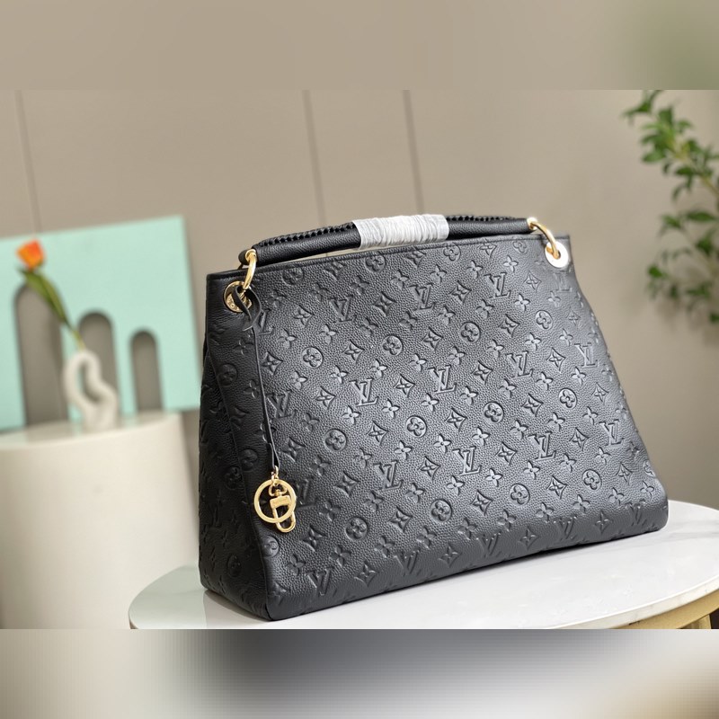 LV M53826 musta brodeerattu kaksikahvainen kantolaukku täysteräslaitteistolla