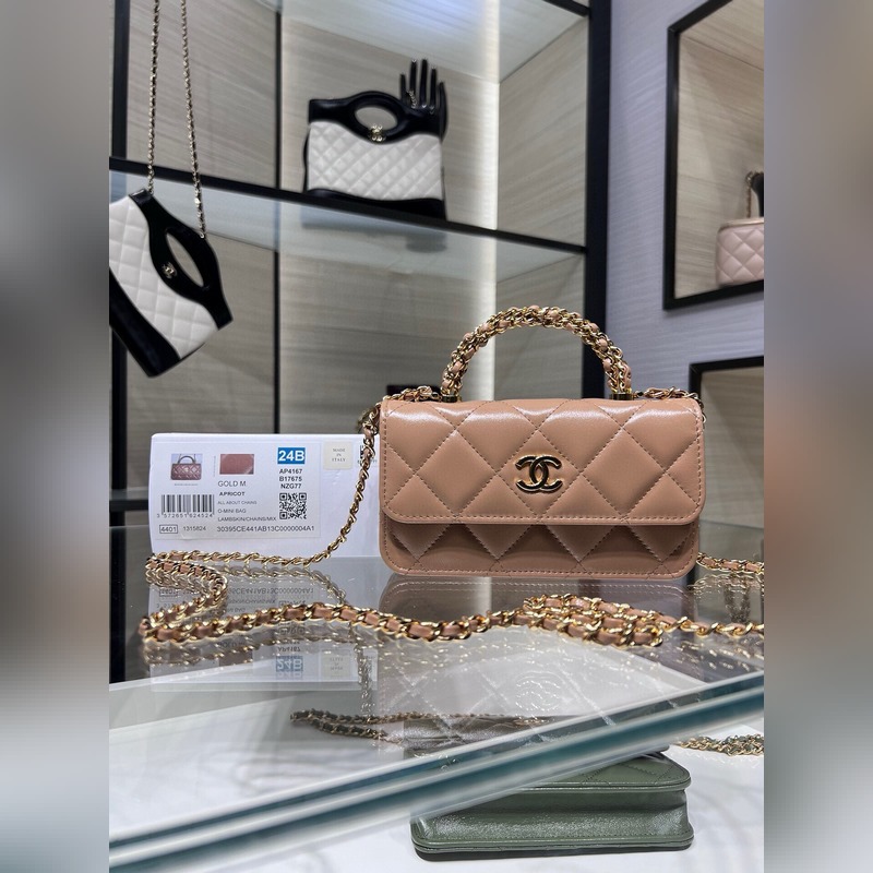Chanel 24B uusin pyörivä kahva ketju puhelimen kopiolaukku öljytty nahka AP4167
