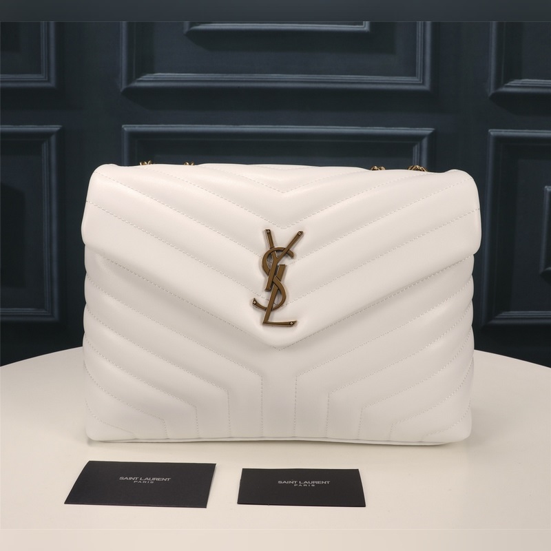 YSL Saint Laurent Classic Valkoinen tikattu Messenger Replica Laukku kultaketjulla