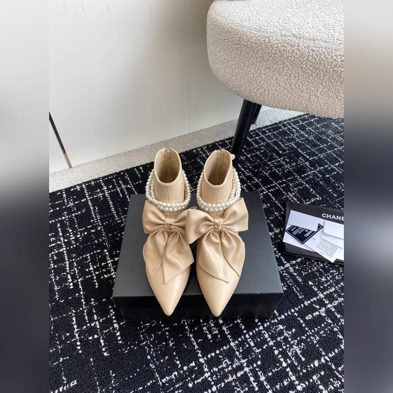Chanel 24 New Pearl koristellut rusetti teräväkärkiset paksut korkokengät