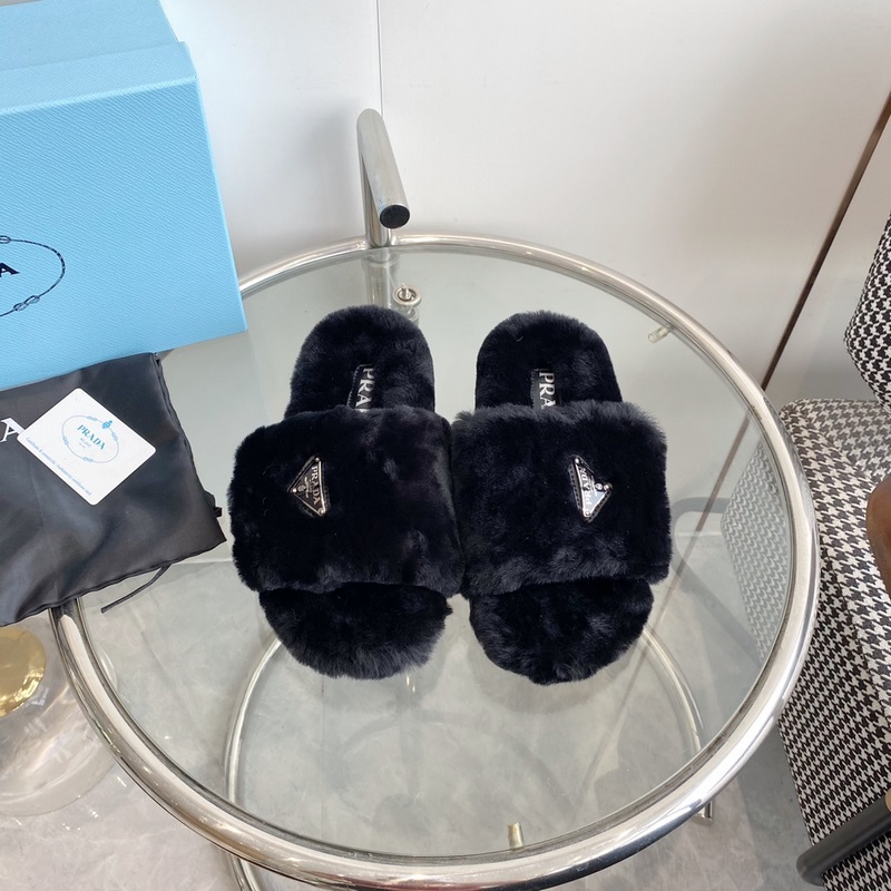 Prada Triangular Logo Paksupohjaiset turkistossut Premium Quality