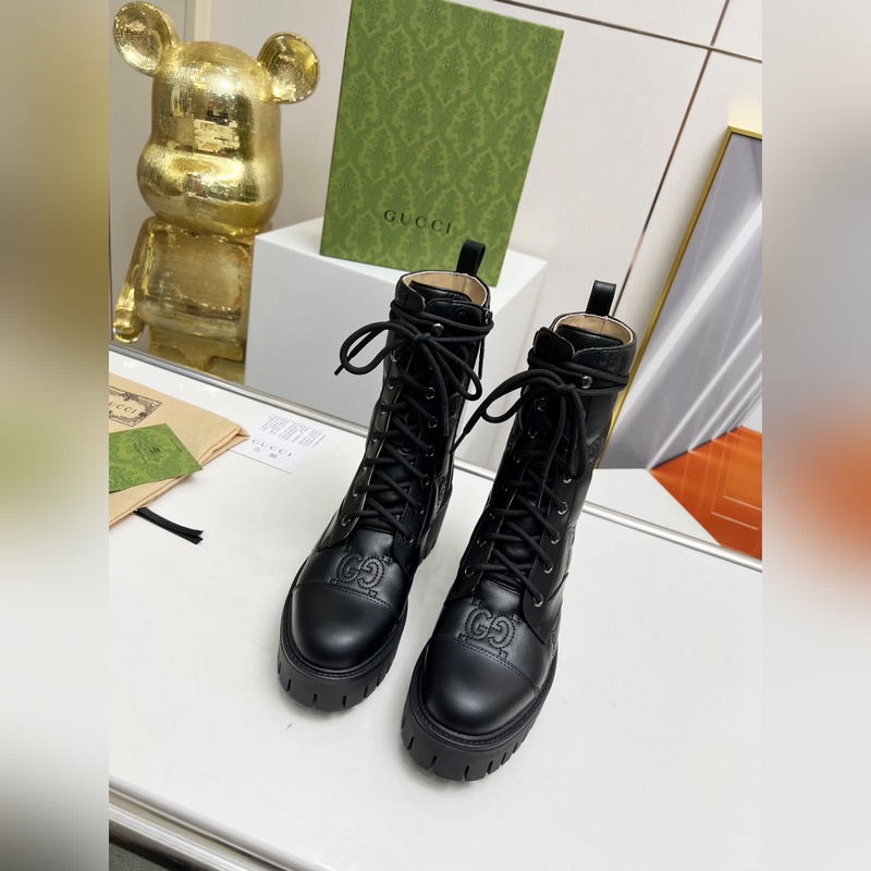 GUCCI Syksy/Talvi Double G Brodeeratut nauhanauhat 8 tuuman saappaat kiiltävä ja matta