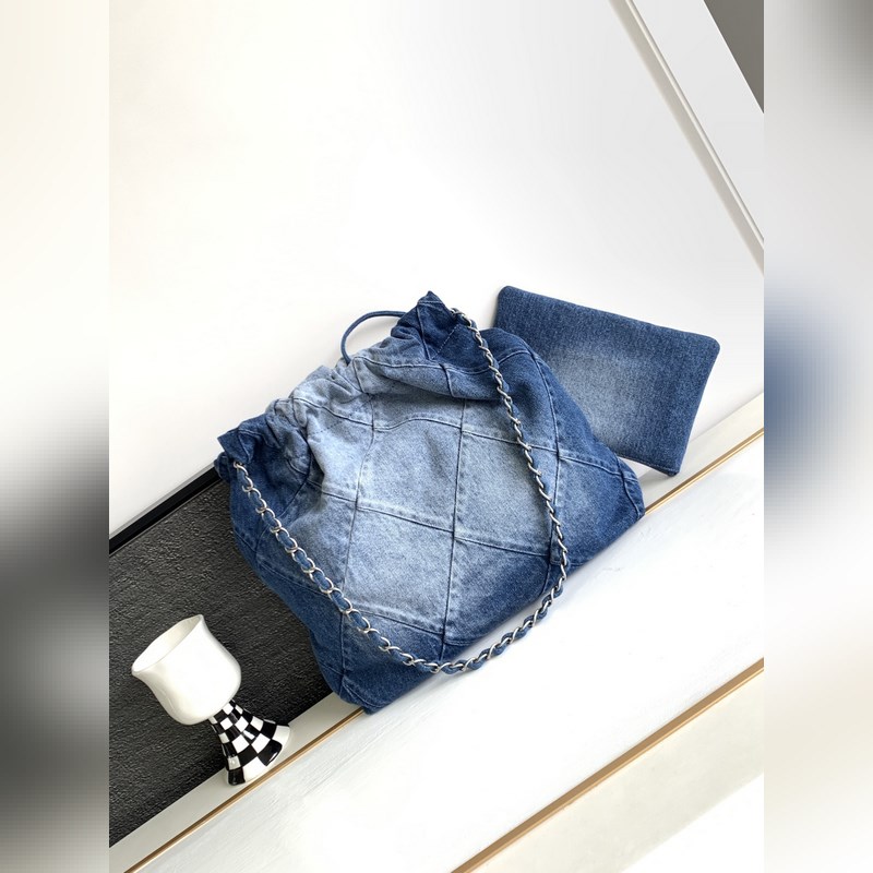 CHANEL Denim 22 replikalaukku väriä vaihtavalla kankaalla ja hopeisella laitteistolla