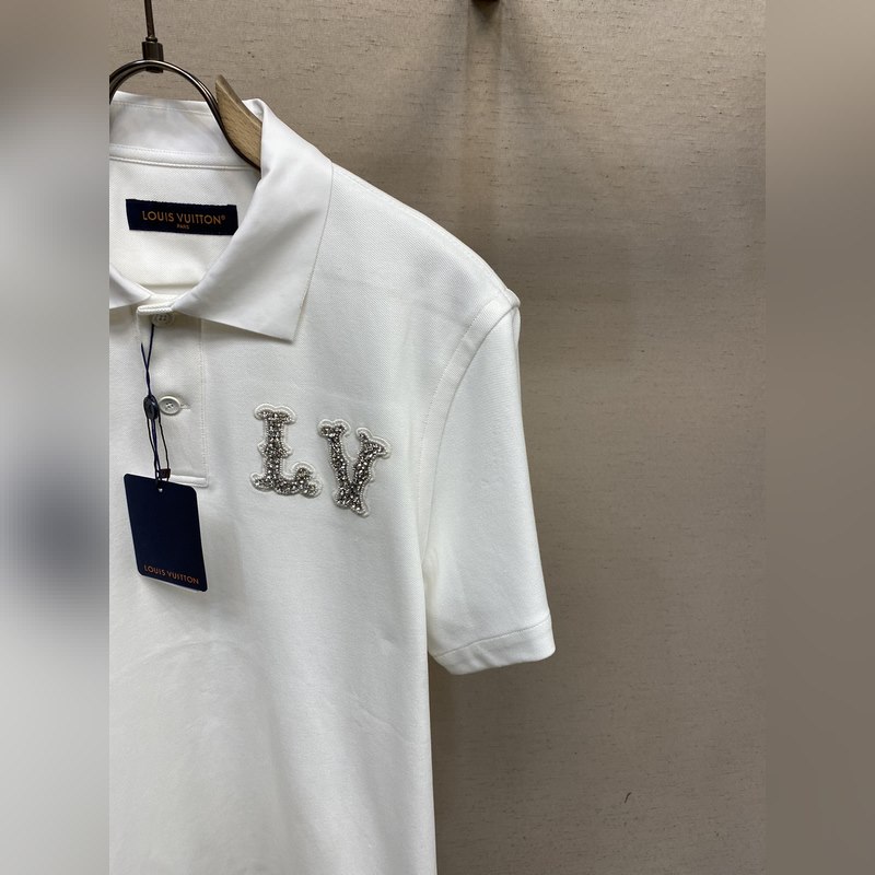 1V Louis 2024FW -pique-kangas, joka tulkitsee 2024 kevään/kesän kiitotien dandy-tyyliä. Rinnassa oleva 1V-merkki on brodeerattu strassilla ja helmillä, ja Marque 1.Vuitton -kirjailtu selässä voi tuoda trendikkään kosketuksen rennon ilmeeseen.