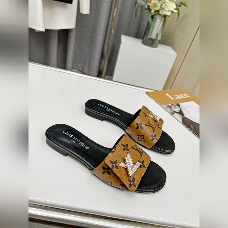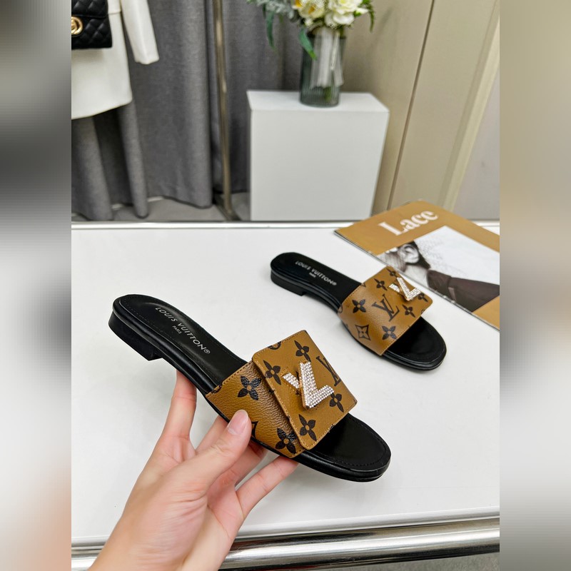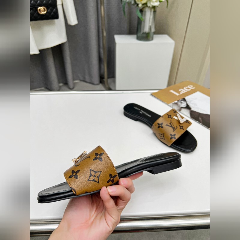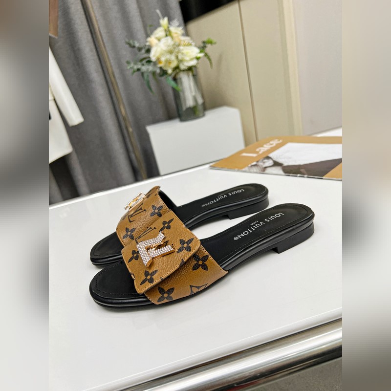Uusi kevät/kesä 2023 The Lock It -sandaali tulkitsee uudelleen Monogrammi-kankaan klassisen muodon. Runsaat yksityiskohdat noudattavat merkin matkailuperinteitä. Ohut nahkainen sisäpohja LV-alkukirjaimilla koristaa päällistä. Lukko ja nastat viittaavat klassiseen matkatavaramalliin. Pehmustettu pohjallinen lisää mukavuutta. Koot 35-40 (41 ja 42 voidaan räätälöidä)