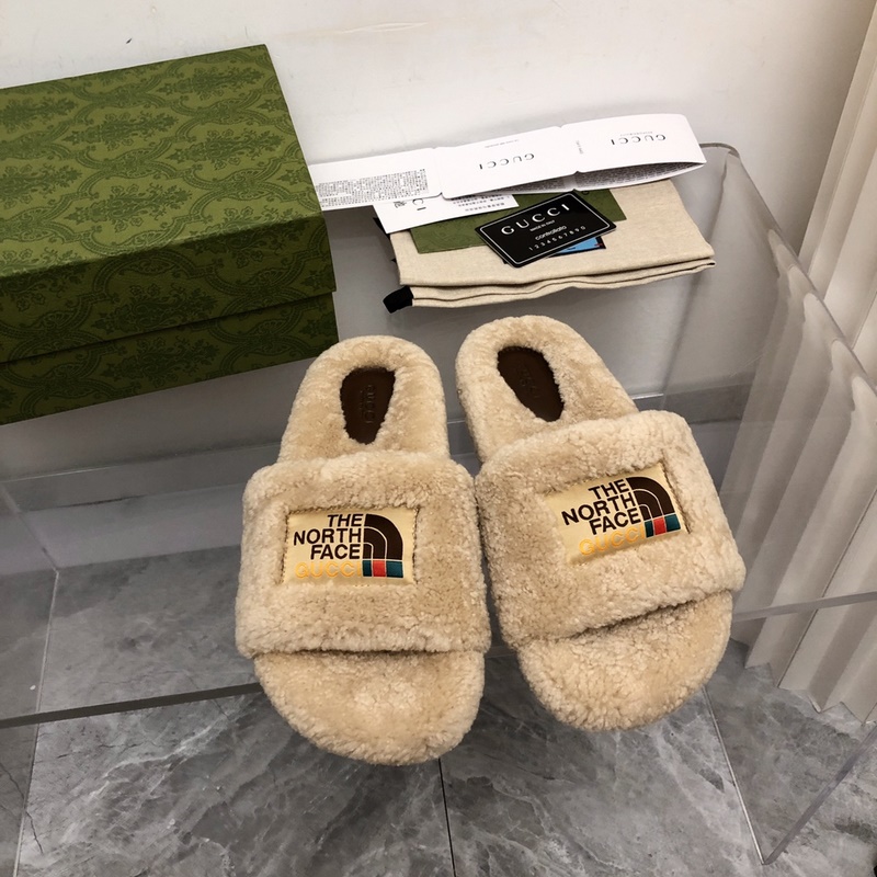 2023 – Huippuversio: TNF x Gucci The North Face -yhteismerkkitossut, turkistossut. Alkuperäinen osto, kehitys ja tuotanto. North Face x Gucci -yhteismerkkiset tossut. Tämän kauden kuumat turkistossut. Suosittu Xiaohongshussa. Suosittu julkkisten ja internetjulkkisten keskuudessa. Karvainen ja muodikas. Yläosassa silmiä hivelevä co-brändilogo. Ruskea, punainen ja vihreä väriyhdistelmä on katseenvangitsija ja heti täynnä North Facen leikkisyyttä~