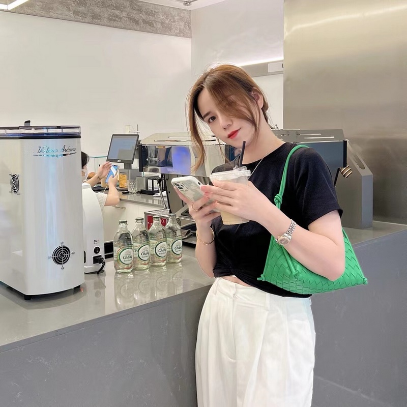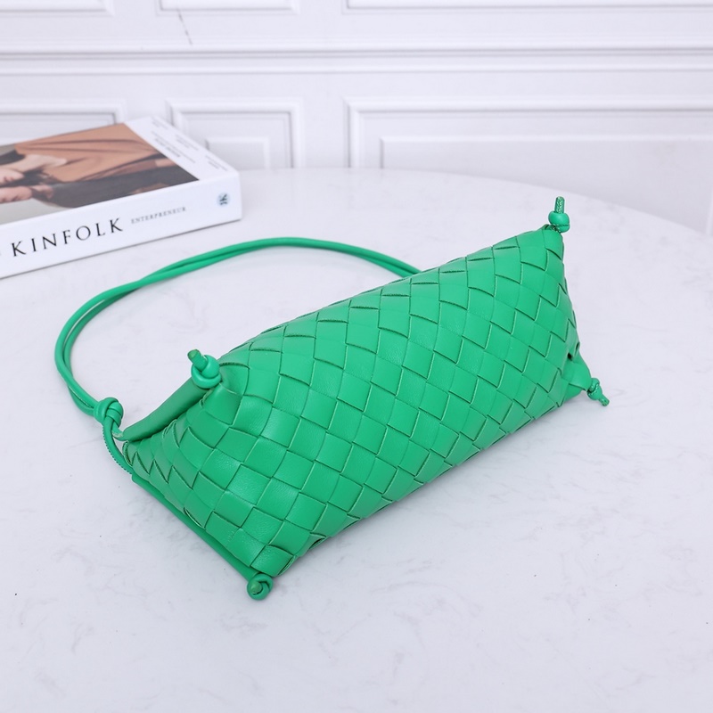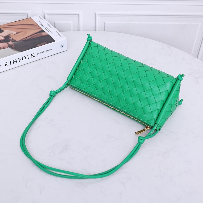 Uudessa 2023 kudotussa kainalolaukussa on lampaannahasta kudottu logo, joka heijastaa täysin materiaalin tekstuuria. Kolmio näyttää täydellisesti laukun kokonaisrungon. Siinä on erittäin klassinen kudottu tyyli. Sisustus on yksinkertainen ja siinä on tarpeeksi tilaa päivittäiseen käyttöön. Sitä voidaan pitää kainalon alla tai kädellä. Se on monipuolinen kainalolaukku päivittäiseen työmatkaan. Koko: 25*12*11cm, mallinumero: 2232A# Parrot Green