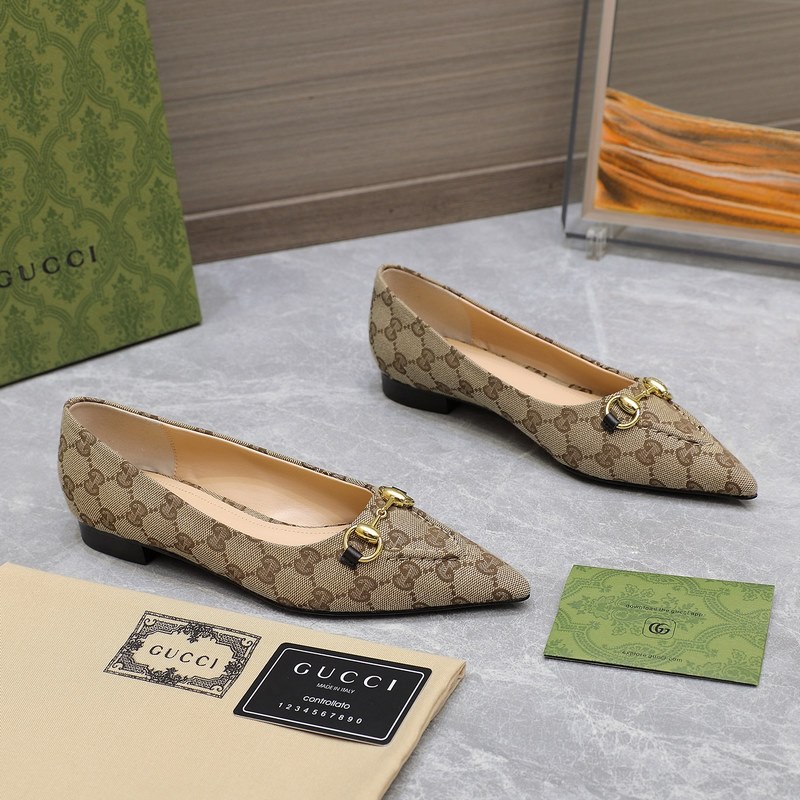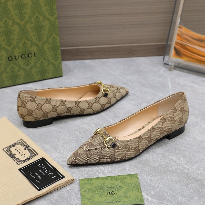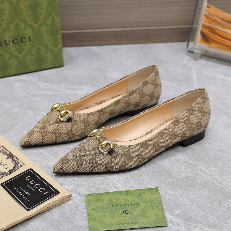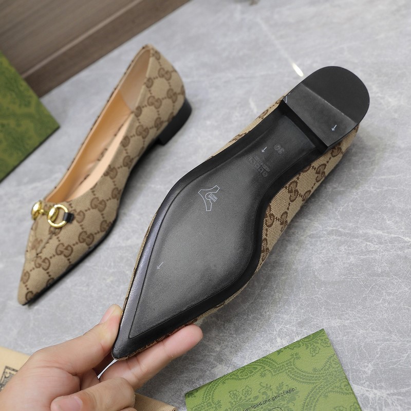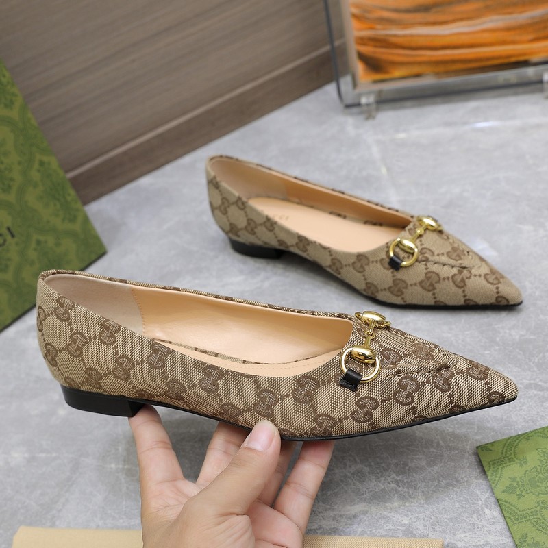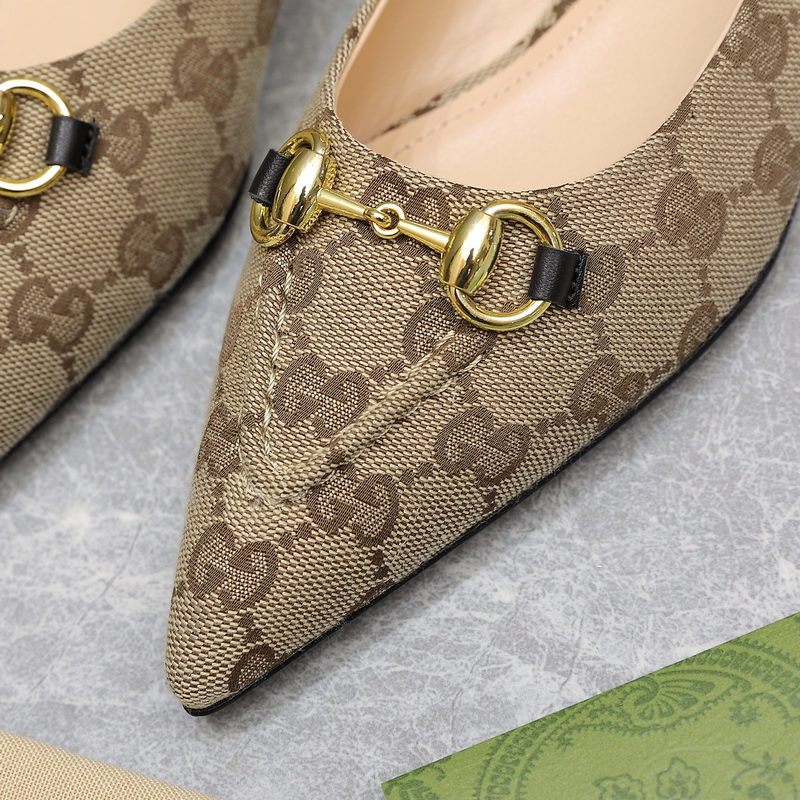 Guccin luova johtaja lanseerasi tyylikkään avokorkoisen matalasuuisen kengän, joka on nerokas, ja tunnistettava brändielementti, kultainen hevospuu, lisää kirkkaan koristelun kengän keskelle. Terävä kärki ja matala kantapää täydentävät toisiaan luoden mukavan ja istuvan version designin