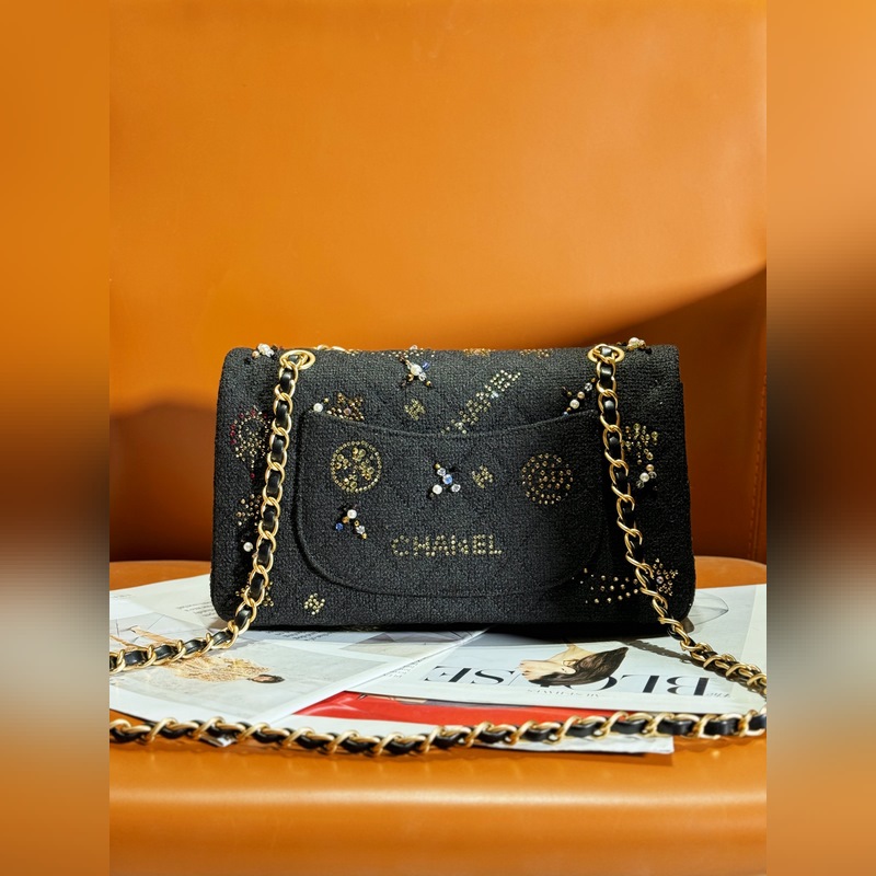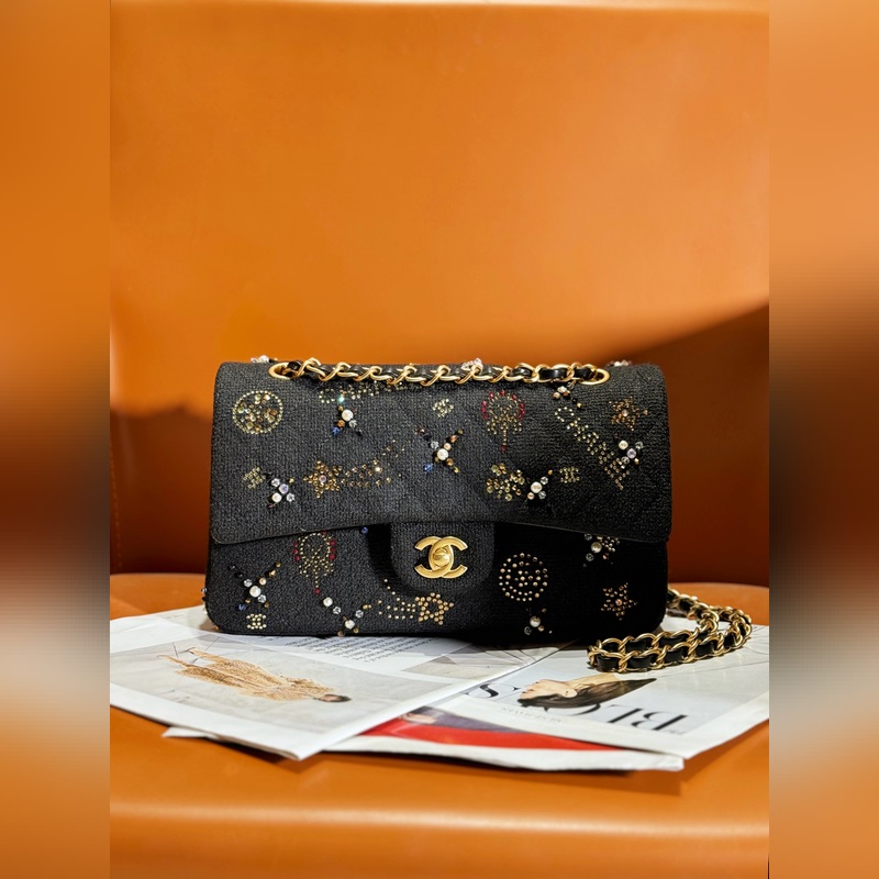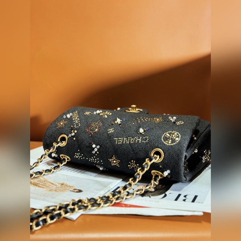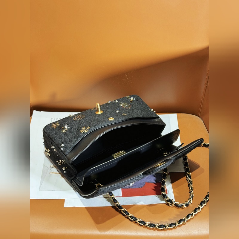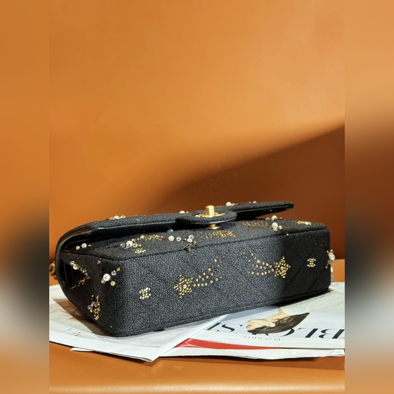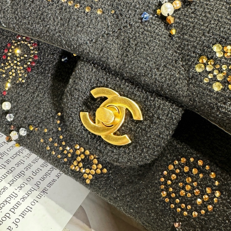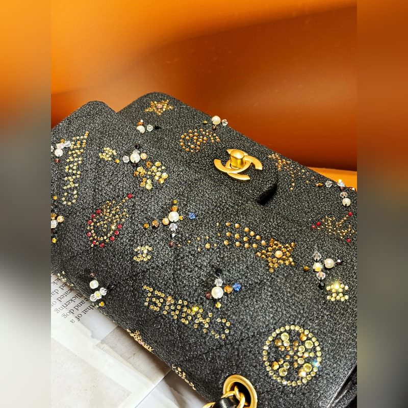 Samettipintaan on upotettu monia erikokoisia kristallihelmiä, ja kimalteleva kristallipaljetti tekee siitä erityisen hohtavan. Mini Double C -logo on upotettu helmitimanttiin, mikä on todella viimeistely ja parantaa välittömästi koko laukun jaloa laatua. CF-retro-kudottu olkahihna on pieni ja hieno, ja siinä on käytetty alkuperäisiä kankaita ja laitteistoa 1:1 palauttamaan Z:n ulkonäkö.